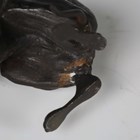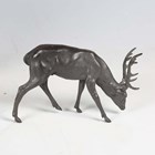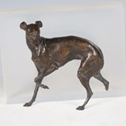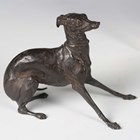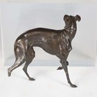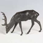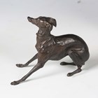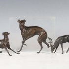 After Pierre-Jules Mêne - an early 20th century brown patinated cast bronze model of a whippet, height 14.5cm (lacking foot), together with another similar model of a whippet and a cast bronze model of a stag, length 13cm.