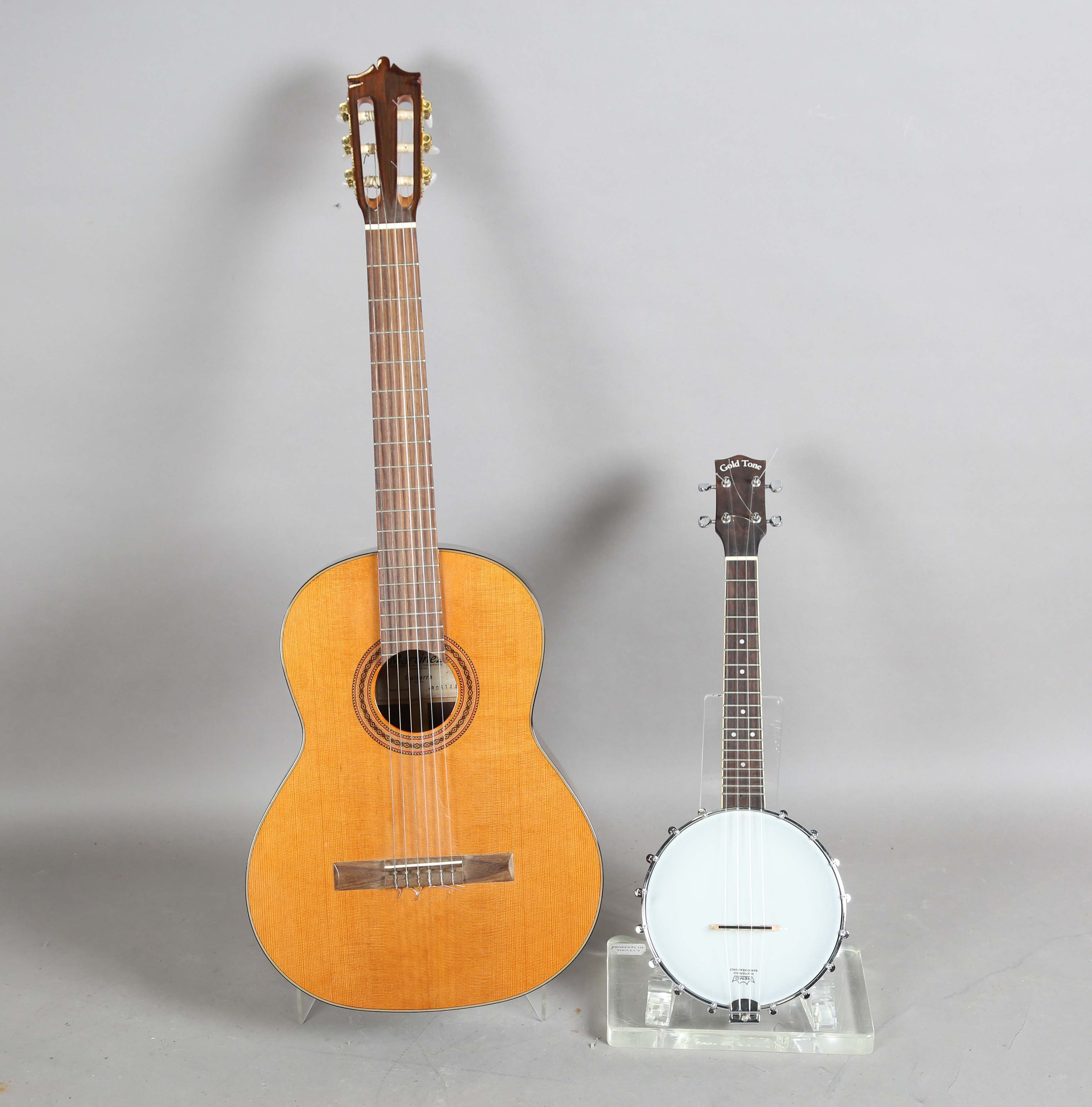 A Martinez acoustic classical guitar, model MCG-50C, serial number 808144, together with a Gold Tone ukelele banjo, cased.