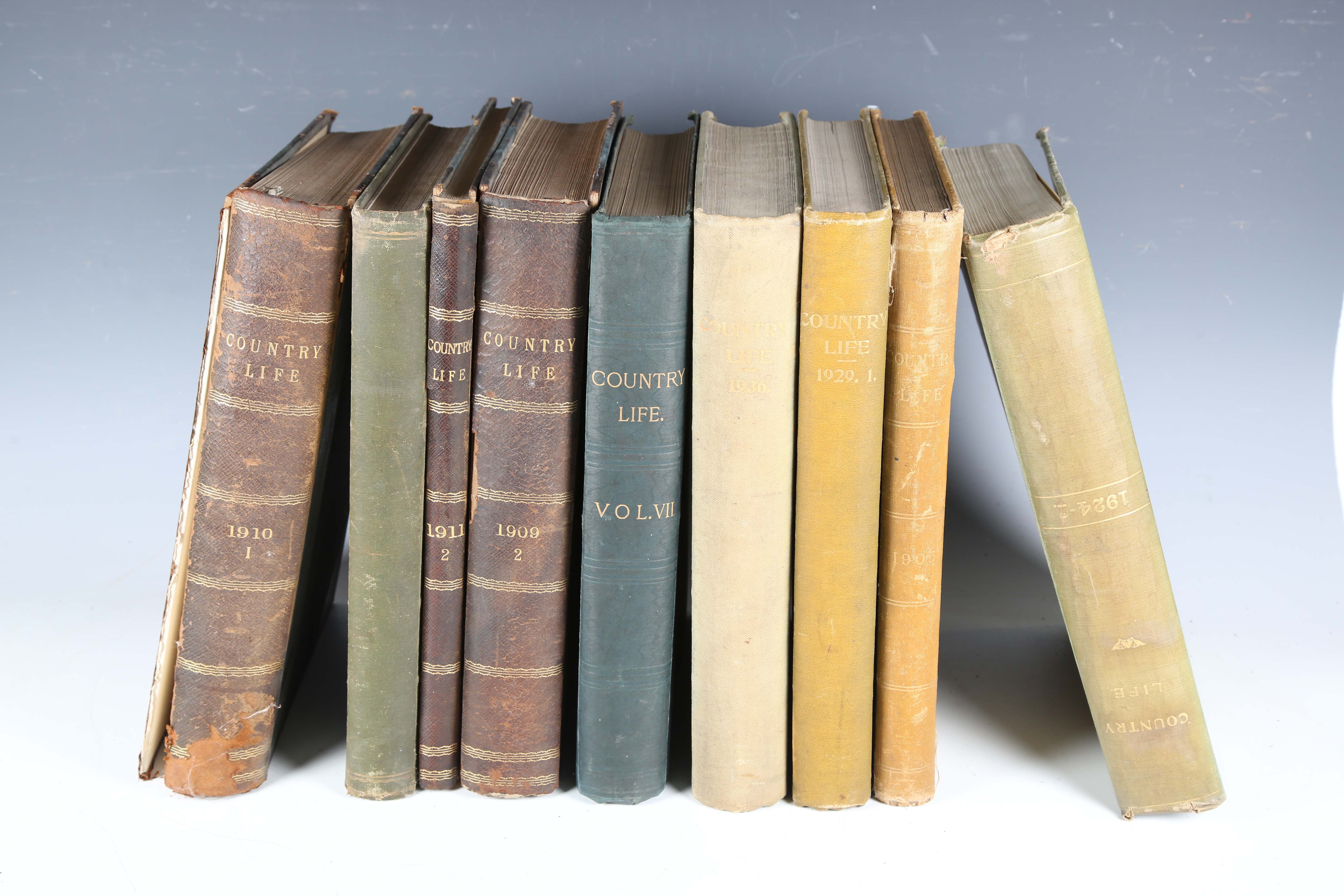 A large collection of mainly early 20th century Country Life magazines, all bound within leather and canvas volumes.