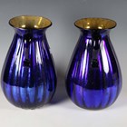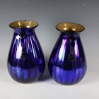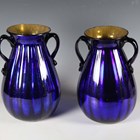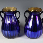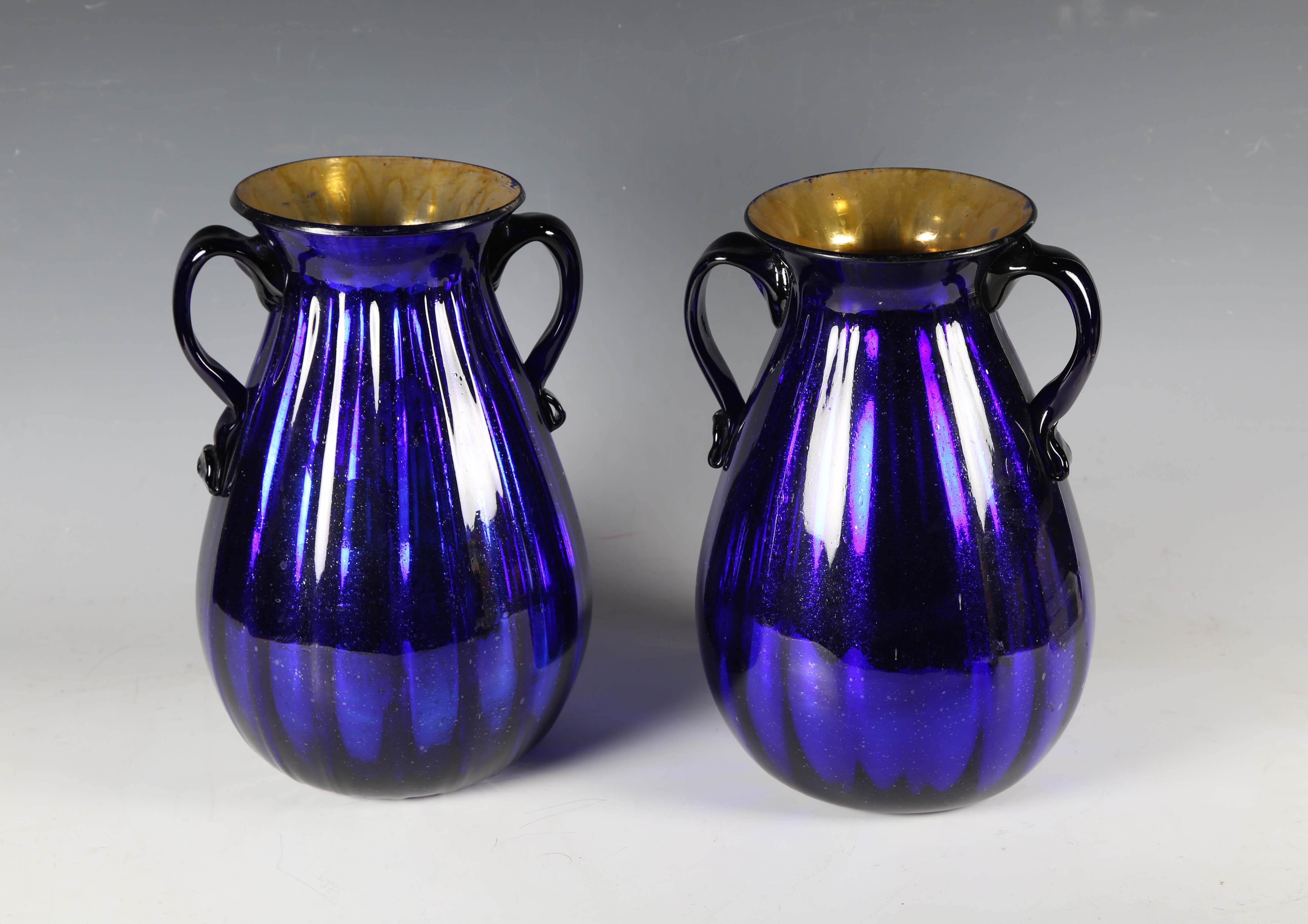 A pair of Italian blue glass vases of ovoid form, each with twin loop handles, height 29cm.