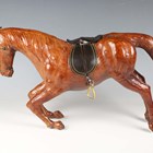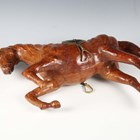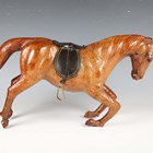 A 20th century leather model of a rearing horse, similar to those retailed by Liberty, length 56cm.