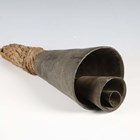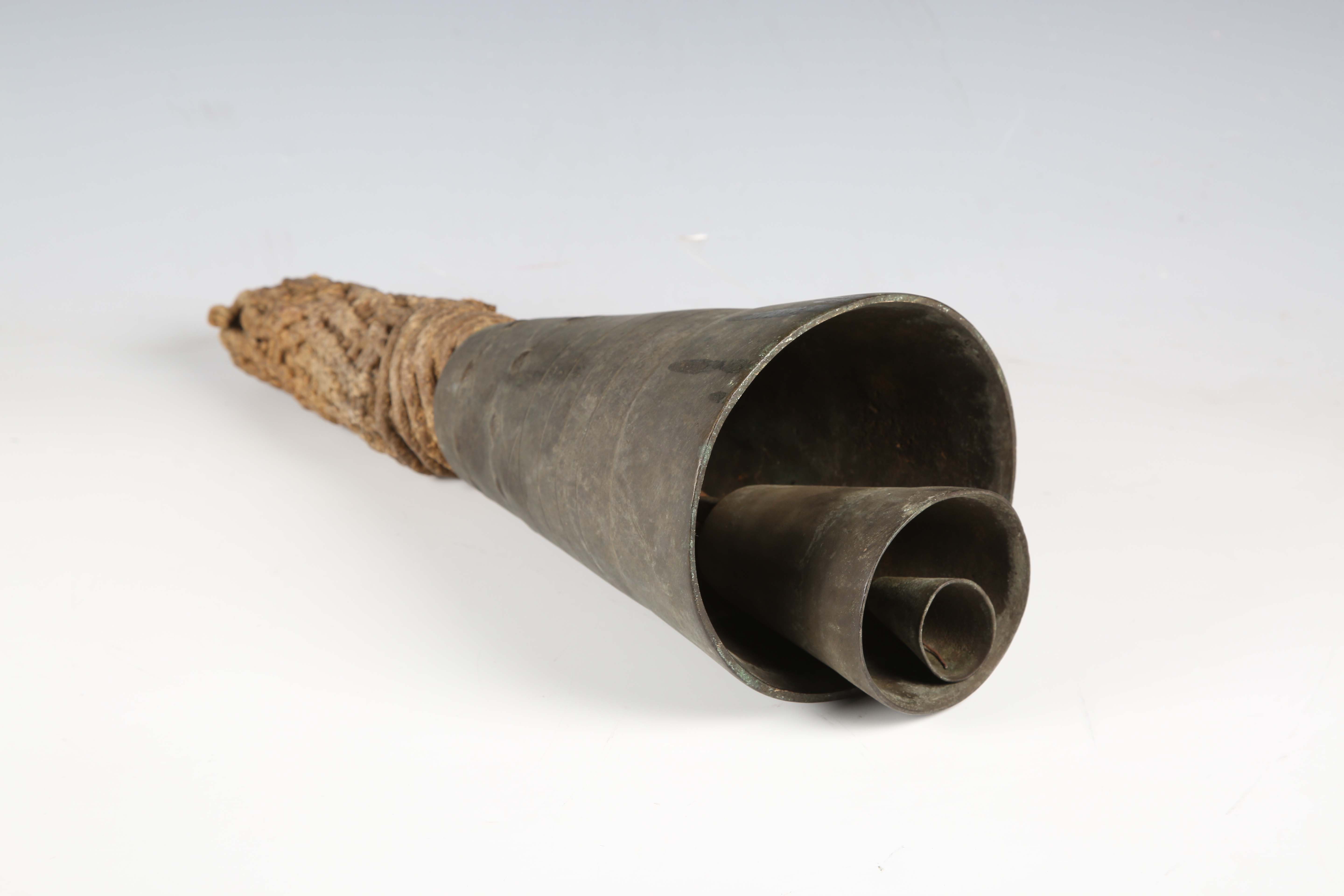 A 19th century bronze triple bell, probably European and used as a horse or cow bell, length 42cm.