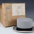 A grey top hat by 'Lock & Co... St James's Street, London', head circumference 55cm, boxed.