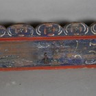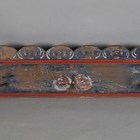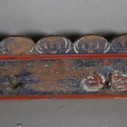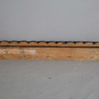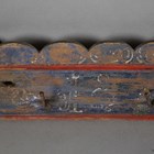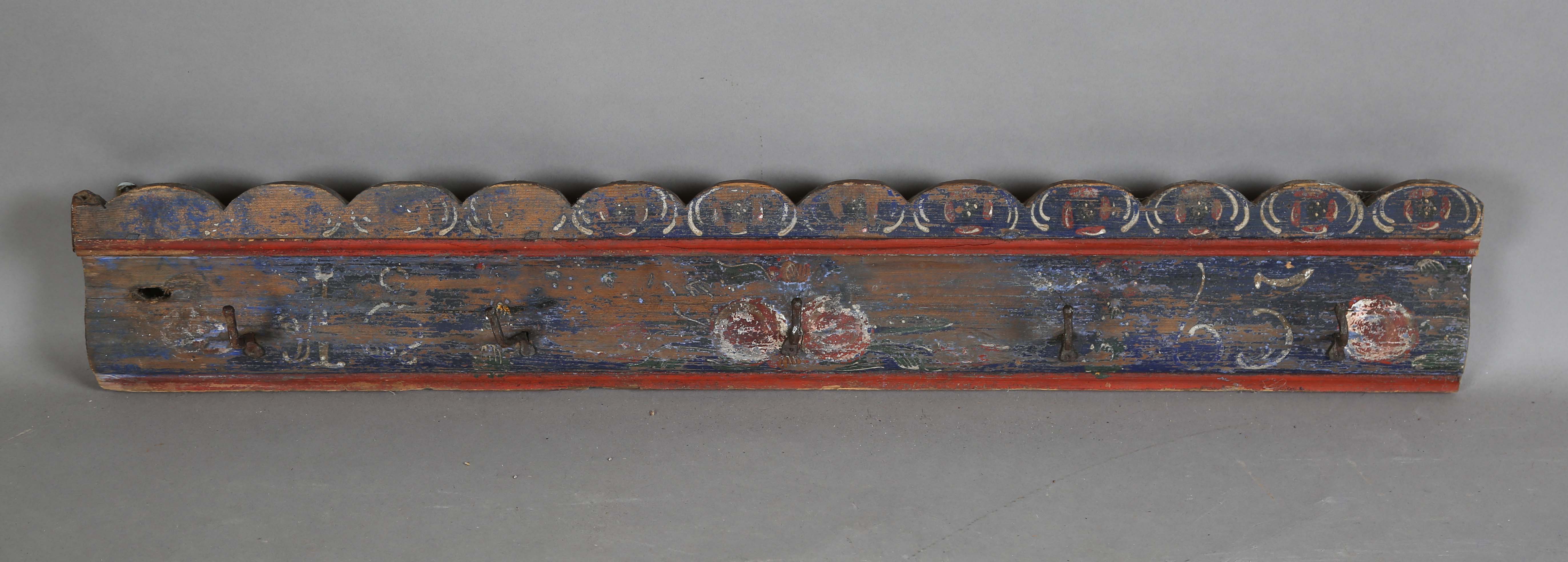 A mid-19th century Scandinavian painted pine coat rack, dated 1865, width 96cm.