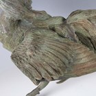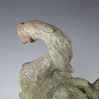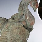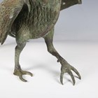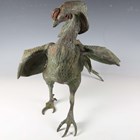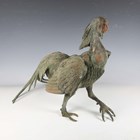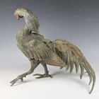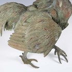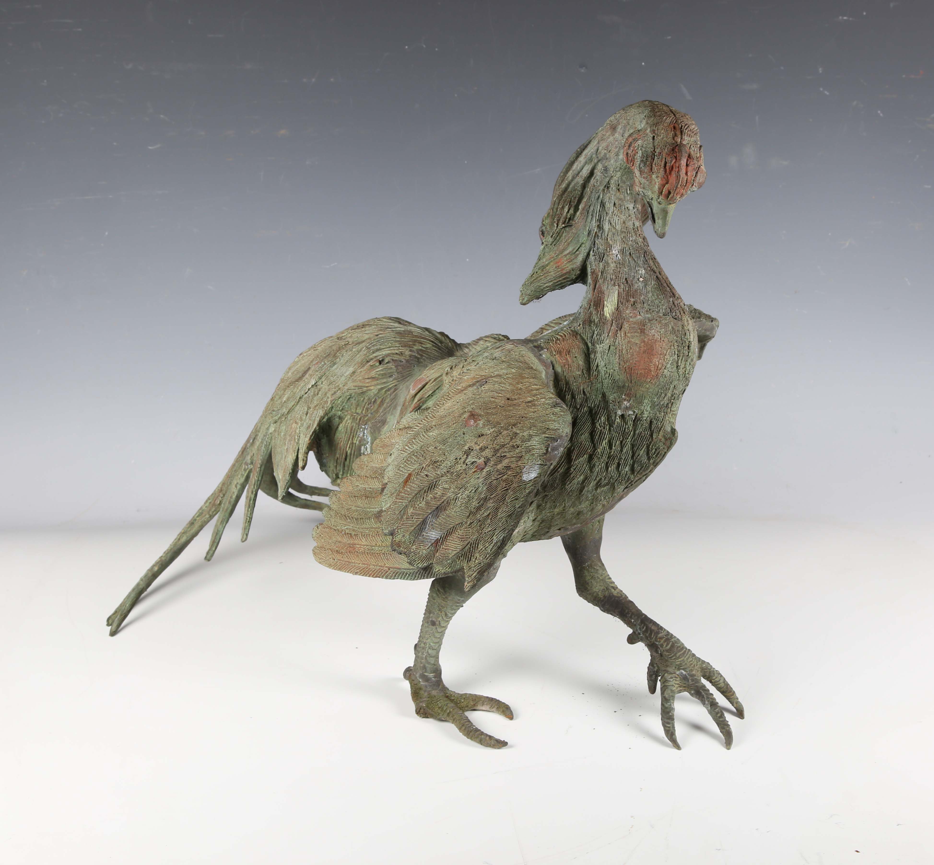 A large 20th century verdigris cast metal model of a stalking cockerel, height 45cm (one claw lacking).