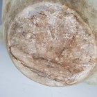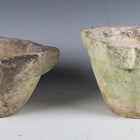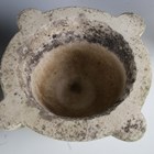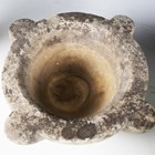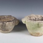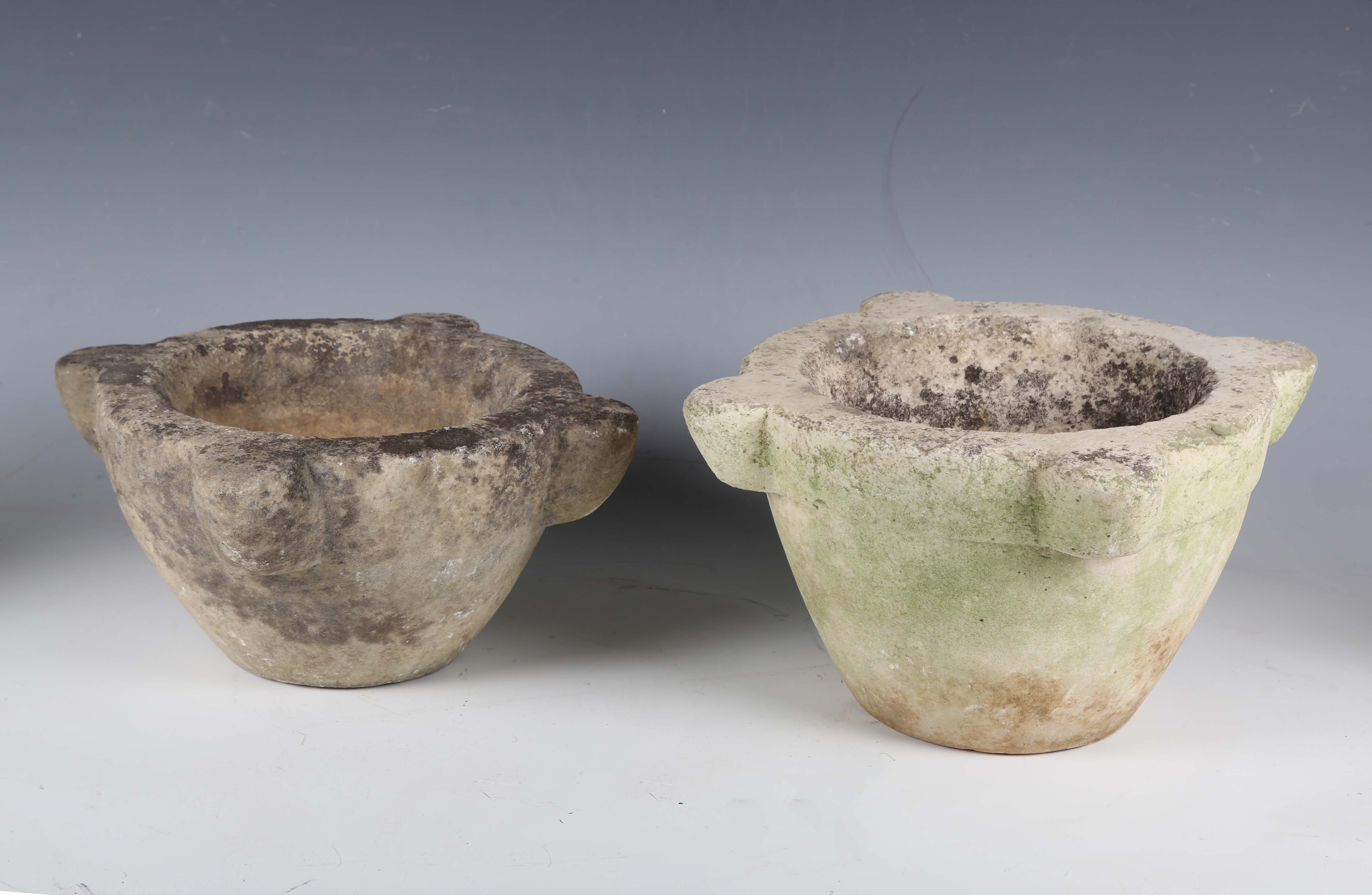 A 19th century carved white marble mortar, the banded collar with four protruding lugs, height 17cm, width 26cm, together with another smaller marble mortar, height 14cm, width 24cm.
