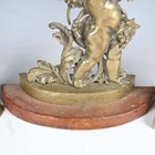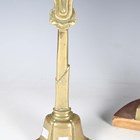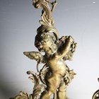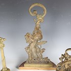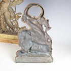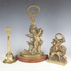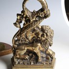 A Victorian cast brass doorstop in the form of a lion and serpent, height 27cm, together with two other brass doorstops, one cast as a cherub, height 51cm.