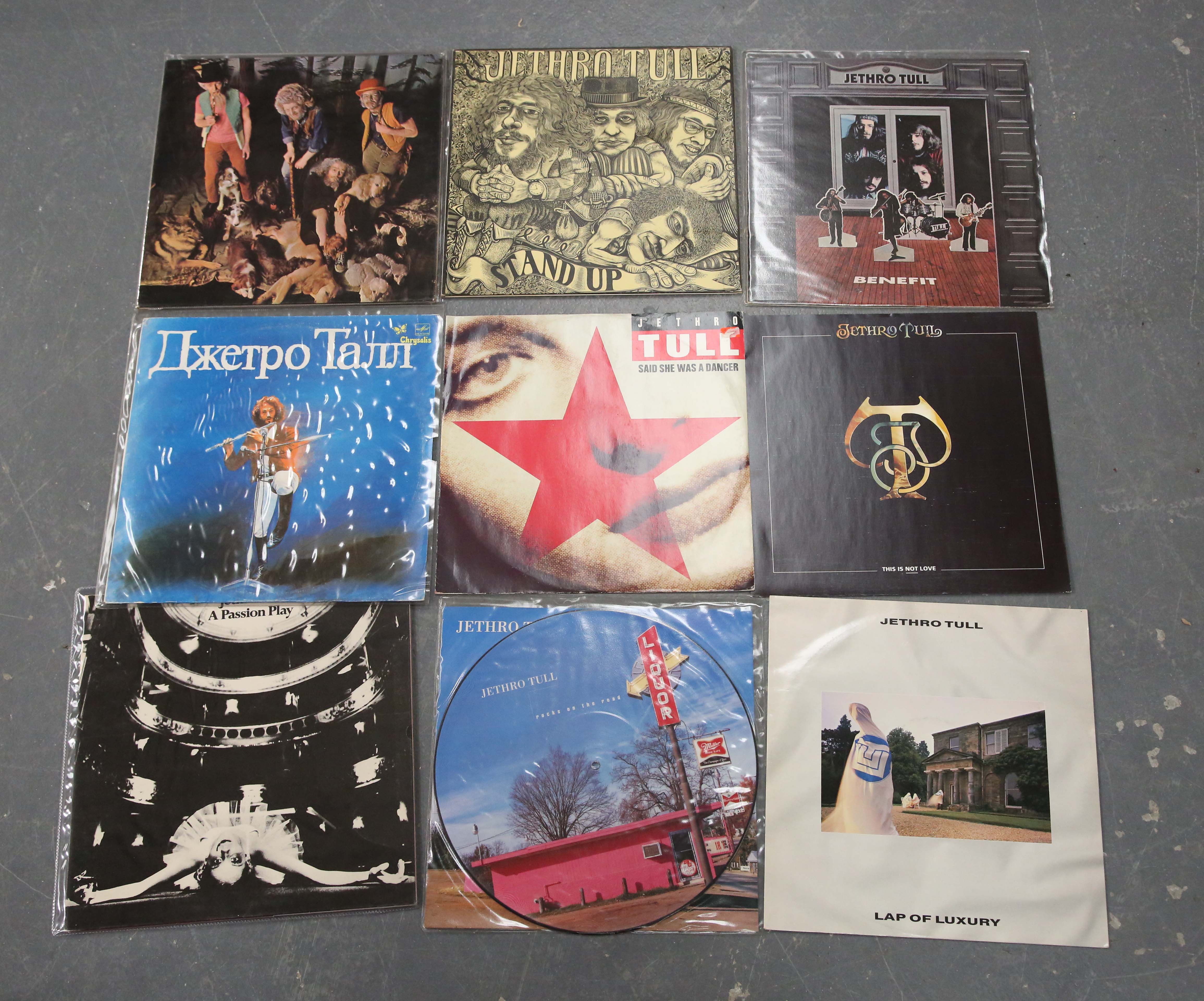 "A collection of fifty-three records by Jethro Tull, comprising twelve albums, five 12"" singles, including 'Rocks On The Road' picture disc, and thirty-six singles or EPs, including a German issue of 'A Song For Jeffrey'."