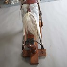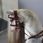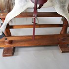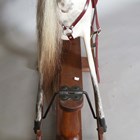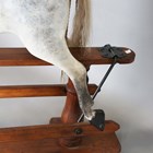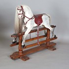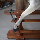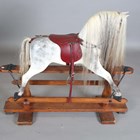 An early 20th century dapple grey painted and carved wooden rocking horse, on a pine trestle style stand, height 94cm.