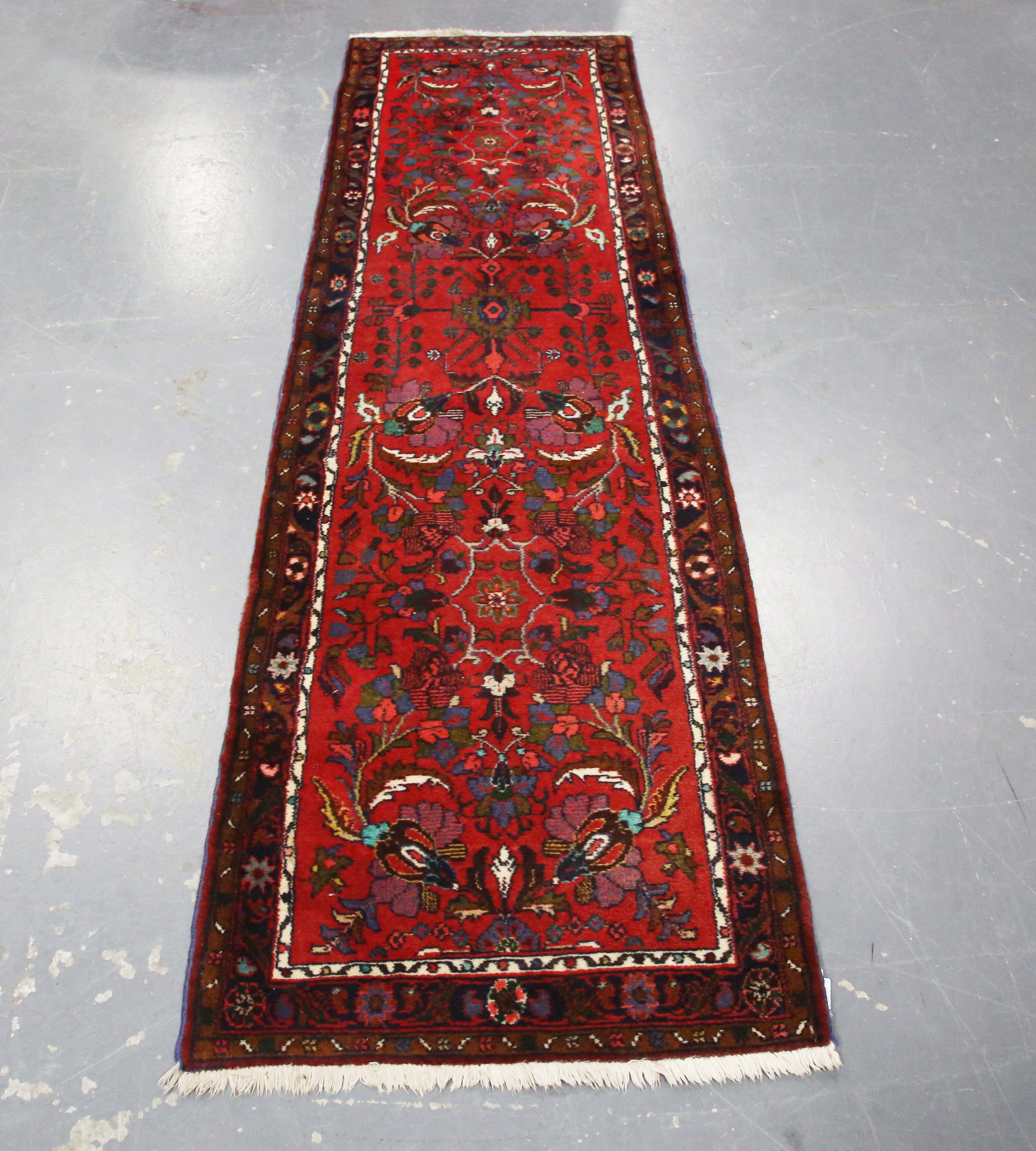 A Sarough runner, Central Persia, late 20th century, the red field with overall flowering vine, within a flowerhead border, 273cm x 78cm.
