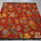 A French flatweave rug, 19th century, worked with overall flowerheads on a shaded red ground, 187cm x 164cm (probably from a larger section of tapestry).
