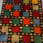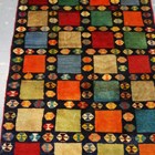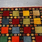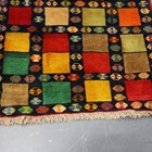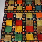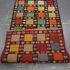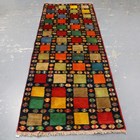 A Persian gabbeh runner, late 20th century, the midnight blue field with overall polychrome squares and guls, 270cm x 100cm.