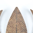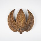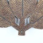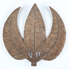 A rare Japanese embossed leather and lacquer-finished sashimono or temporary banner emblem in the form of three leaves, Edo period, height 23cm, width 23cm. Provenance: the collection of the late Roald Knutsen (1933-2025); ex Basford Dean Collection. Note: Dr Bashford Dean (1867-1928) was founder and curator of the arms and armour department at the Met, New York. Roald Knutsen notes that these were made as temporary emblems for identifying one samurai clan from another during battle. The emblem would have been applied to the top of a bamboo pole and attached to the cuirass of the warrior. Many of these, if damaged, would need to be replaced or repaired in the field.