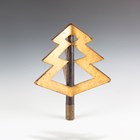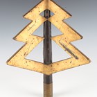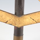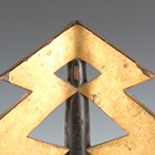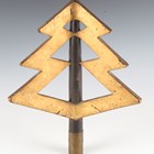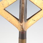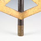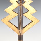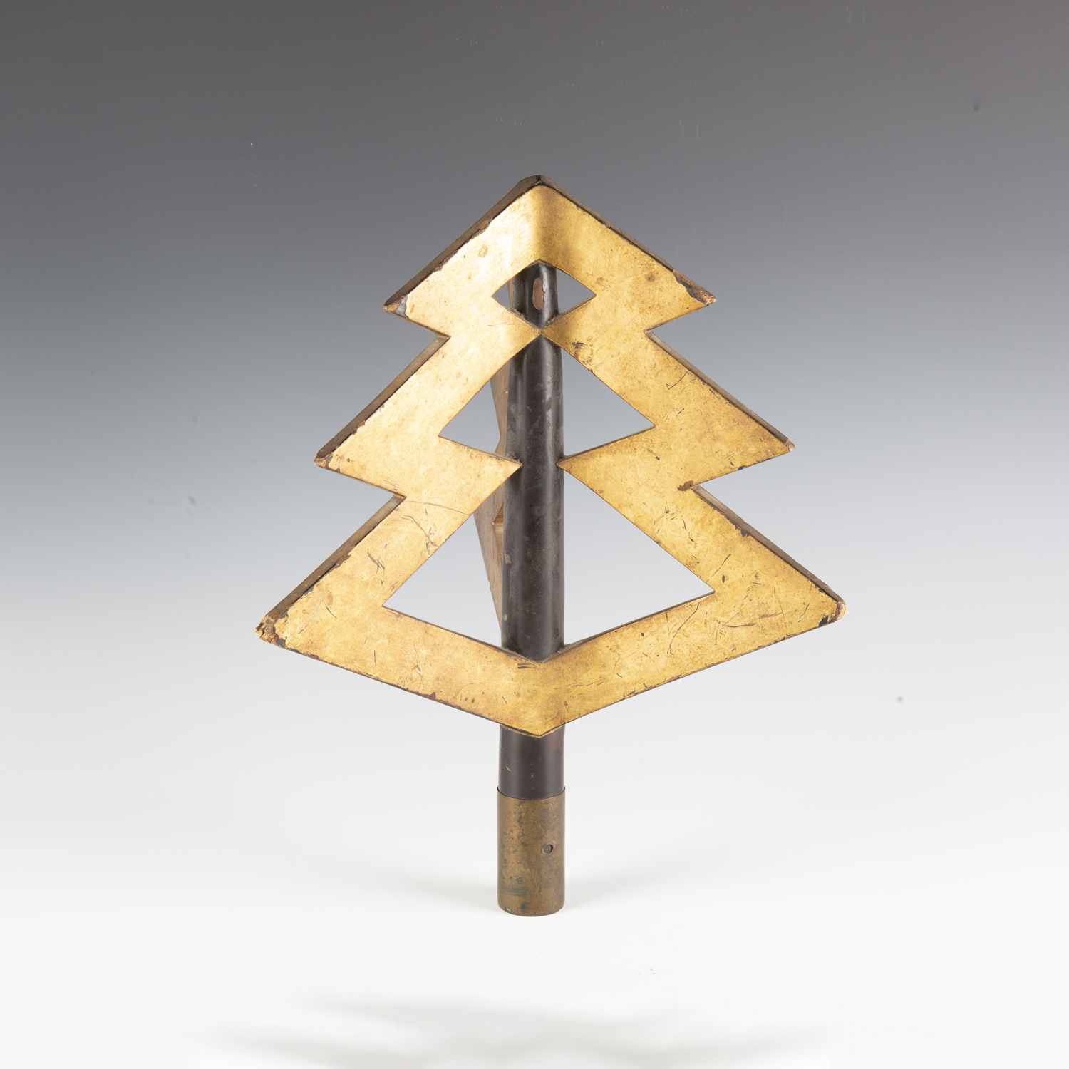 A rare Japanese wood, gilt and black lacquered uma-jirushi or processional banner flagpole finial, Edo period, with three gilt angular graduated thunderbolt projections, supported on a black shaft with brass collar, length 38cm. Provenance: the collection of the late Roald Knutsen (1933-2025). Note: probably used in the Daimyo Gyoretsu procession.