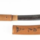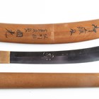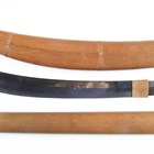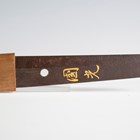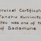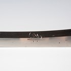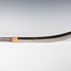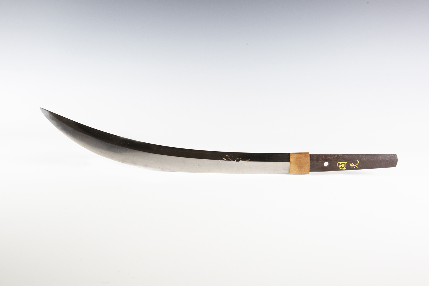 A fine and extremely rare Japanese naginata by Tanshu Kunimitsu, Hojoji school, third quarter 14th century, the fine curved single edged blade with even cloud-like hamon and engraved to both faces with two bonji giving the protectorship of Marishi-Ten to the warrior holding it in war, blade length 36cm, the tang finely signed in gold and later altered for use as a sidearm, with single hole piercing and mounted in a shirazaya, overall length 51cm, with appraisal certificate obtained in the 1960s from Japan. Provenance: the collection of the late Roald Knutsen (1933-2025); purchased from the late David Tudor-Williams, 16th July 1961, for £30, and thought to have been obtained by him from the Miki-Han (1000-year-old house), as sold by them in 1876. Note: illustrated in ‘Japanese Polearms’ by Roald M. Knutsen, The Holland Press, London: 1963, page 118, figure 8. Roald Knutsen noted that there was good reason to believe that this blade may once have belonged to a ranking senior retainer family of the Miki- Ke in present day Hyogo-ken and then sold in 1876. Marishi -Ten was a significant Buddhist deity in Japan, who was revered by warriors for protection and strength during war.