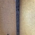 A fine Japanese magari-yari, Edo period, with stylistic trident (bull’s horn) head, head length 16.5cm, the signed tang supported on a predominantly ebonized wood shaft, the part-textured ring-turned and red and gilt lacquer-decorated upper section with fine brass metal collars and fittings and iron hirumaki, width 9.5cm, overall length 213cm, the tip of one of the side blades is 2mm further from the centre blade than the other one. Provenance: the collection of the late Roald Knutsen (1933-2025); purchased Fairclough, January 1961, for £5 10s. Note: illustrated in ‘Japanese Polearms’ by Roald M. Knutsen, The Holland Press, London: 1963, plate 13. Roald Knutsen identified the signature as Yamashiro No Kami Fujiwara No Hyak’Koku Nyudo Kazutora, and noted that this is the later signature of Kunishige of Musashi province, mid-18th century.