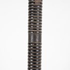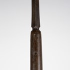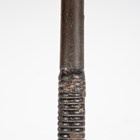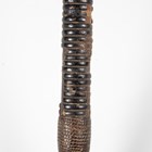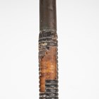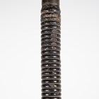 A Japanese horseman’s yari, Edo period, with almost square-section steel head, head length 9cm, mounted on a hardwood shaft with moulded ribbed upper grip section, finished in black lacquer with copper and woven bindings, overall length 269cm (lacking hirumaki terminal), with textured red lacquer-finished rectangular saya. Provenance: the collection of the late Roald Knutsen (1933-2025); ex H. Russell Robinson Collection 1958, purchased for £3. Note: illustrated in ‘Japanese Polearms’ by Roald M. Knutsen, The Holland Press, London: 1963, page 168 plate 33. We have been unable to remove the head from the shaft to confirm the tang is signed, but Roald Knutsen identified the signature as Yamamoto Tada-Aki, not recorded but probably mid-19th century.