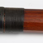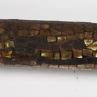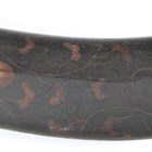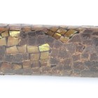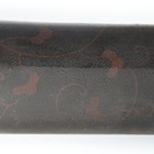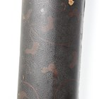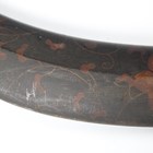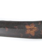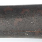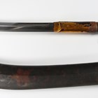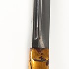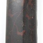 A fine Japanese naginata, Edo period, the curved single-edged blade with fine even hamon, blade length 42cm, fine deep-grooved and formed horimono, curved part-length shinogi and fine ko-shinogi tip, fitted to a long facet-formed hardwood shaft, the upper grip section veneered in abalone shell and mounted with shaped openwork copper collars and mounts and a fine cast bronze openwork hirumaki terminal, overall length 245cm, the blade with wood-boarded lacquered and gilt-embellished scabbard with trailing foliate and single-flowerhead decoration. Provenance: the collection of the late Roald Knutsen (1933-2025).