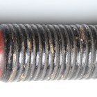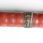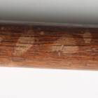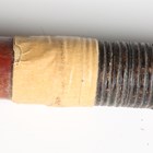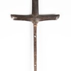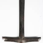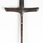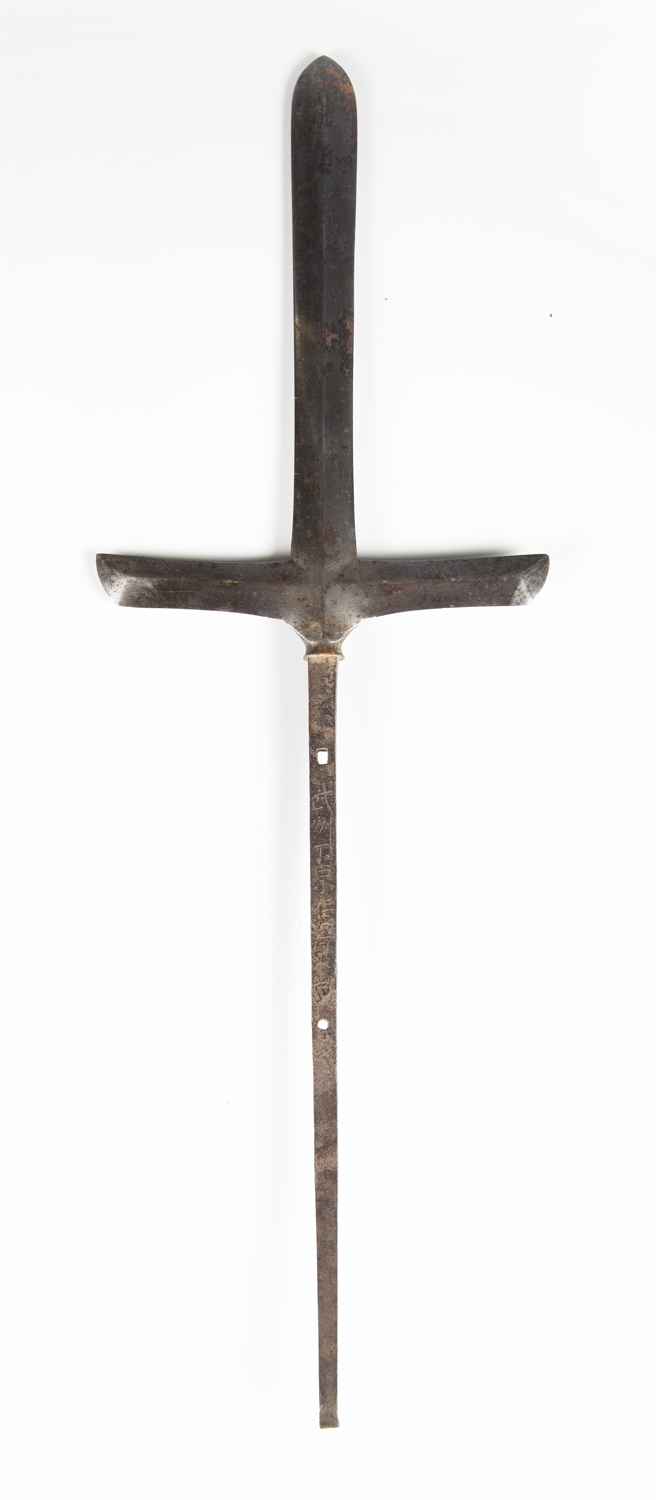 A Japanese magari-yari with stylistic T-shaped head, early Edo period, head length 20cm, the long signed tang with double hole piercings, mounted on an oak shaft, the upper grip section of corrugated red lacquer with rattan collar bindings, overall length 245cm (lacking hirumaki). Provenance: the collection of the late Roald Knutsen (1933-2025); purchased Torquay via Portobello Road, June 1961, for £3 10s. Note: Roald Knutsen identified the signature as Bushu Shitahara No Ju Yasusige, circa 1625-50.