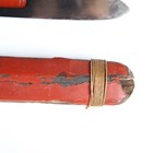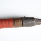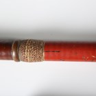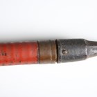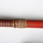 A fine Japanese su-yari with long triangular-section blade, Edo period, blade length 46cm, the deep-fullered face highlighted with red lacquer decoration, the long tang with single hole piercing and signed to one face, mounted on a long red lacquer shaft with corrugated finish, the upper grip section picked out with gilt painted decoration, with rattan and copper metal bindings and steel hirumaki terminal, overall length 290cm, the blade with red lacquer saya. Provenance: the collection of the late Roald Knutsen (1933-2025); purchased from Wallis & Wallis, December 1959, for £2. Note: Roald Knutsen identified the signature as Kanezaki and noted twenty-three smiths of this name recorded and that Mr B.W. Robinson said this piece dates to the last part of the 17th or first part of the 18th century, probably made by the fifth generation of Kanezaki.
