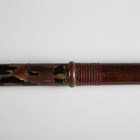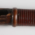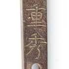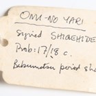 A Japanese oni-no-yari or ‘demon spear’, Edo period, with long slender blade, blade length 54.5cm, the long tang with single hole piercing and signed to one face, mounted on an oak shaft, the upper grip of black lacquer with plain copper ring mounts, overall length 230cm (lacking hirumaki). Provenance: the collection of the late Roald Knutsen (1933-2025); purchased Wallis & Wallis, January 1961, for £3. Note: Roald Knutsen identified the signature as Shigehide and noted that there were four swordsmiths known by this name, most working throughout the 19th century. He also noted that the shaft has a feature with the copper rings suggesting probably used on horseback.