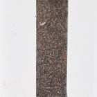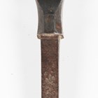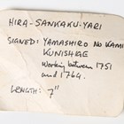 A Japanese hira-sankaku-yari spearhead, Edo period, with fine triangular section point, head length 18cm, one face with deep long fuller, the long tang with double hole piercings and signed to one face, overall length 53cm. Provenance: the collection of the late Roald Knutsen (1933-2025). Note: Roald Knutsen identified the signature as Yamashiro No Kami Kunishige, who worked between 1751 and 1764.