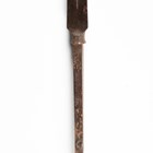 A Japanese hira-sankaku-yari, probably 16th century, with triangular-section head, head length 14.5cm, with fine single fuller to one face, the long unsigned tang with single hole piercing, mounted on an oak shaft, the upper grip section with textured red lacquer finish and gilt rattan binding, overall length 226.5cm (mounts lacking). Provenance: the collection of the late Roald Knutsen (1933-2025). Note: Roald Knutsen noted probably 16th century.