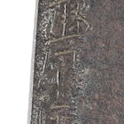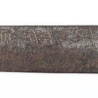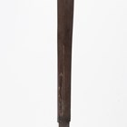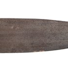 A scarce and unusual Japanese naginata with long double-edged blade, blade length 41cm, detailed with groove-like fuller to one side, the other with horimono detailed as a vajra-bladed ken, the tang with single hole piercing and signed to one face, overall length 68cm. Provenance: the collection of the late Roald Knutsen (1933-2025). Note: Roald Knutsen identified the signature as Mu(Sashi)-Shu Fujiwara No Ju Yasunobu, and noted possibly Muromachi period, 15th century.