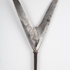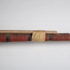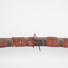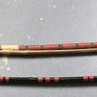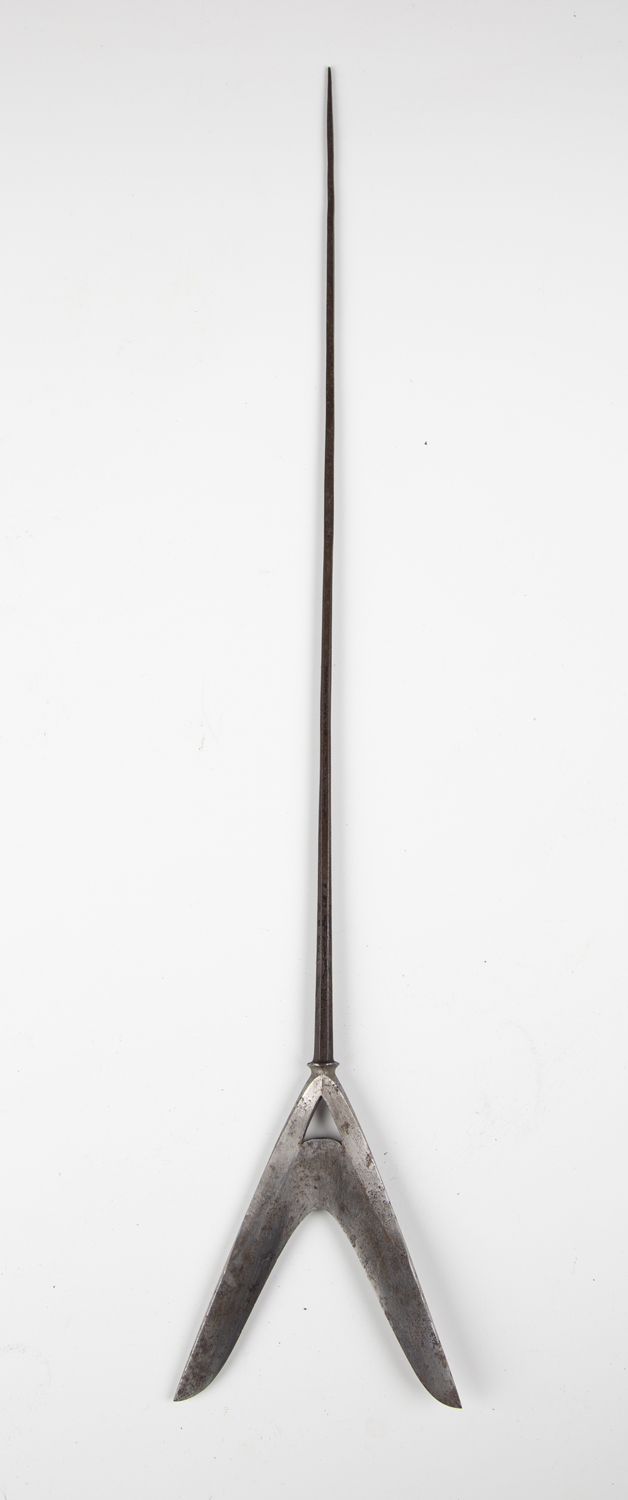 A Japanese arrowhead, Edo period, with fine karimata head, head length 10.5cm, and fine long tang, overall length 47cm, together with two Japanese samurai war bows, Edo period, with black lacquer finish and red lacquered rattan binding, lengths 215cm and 187cm. Provenance: the collection of the late Roald Knutsen (1933-2025); acquired from David Tudor-Williams Collection 1962. Note: arrowhead probably 17th century.