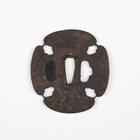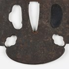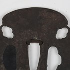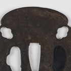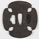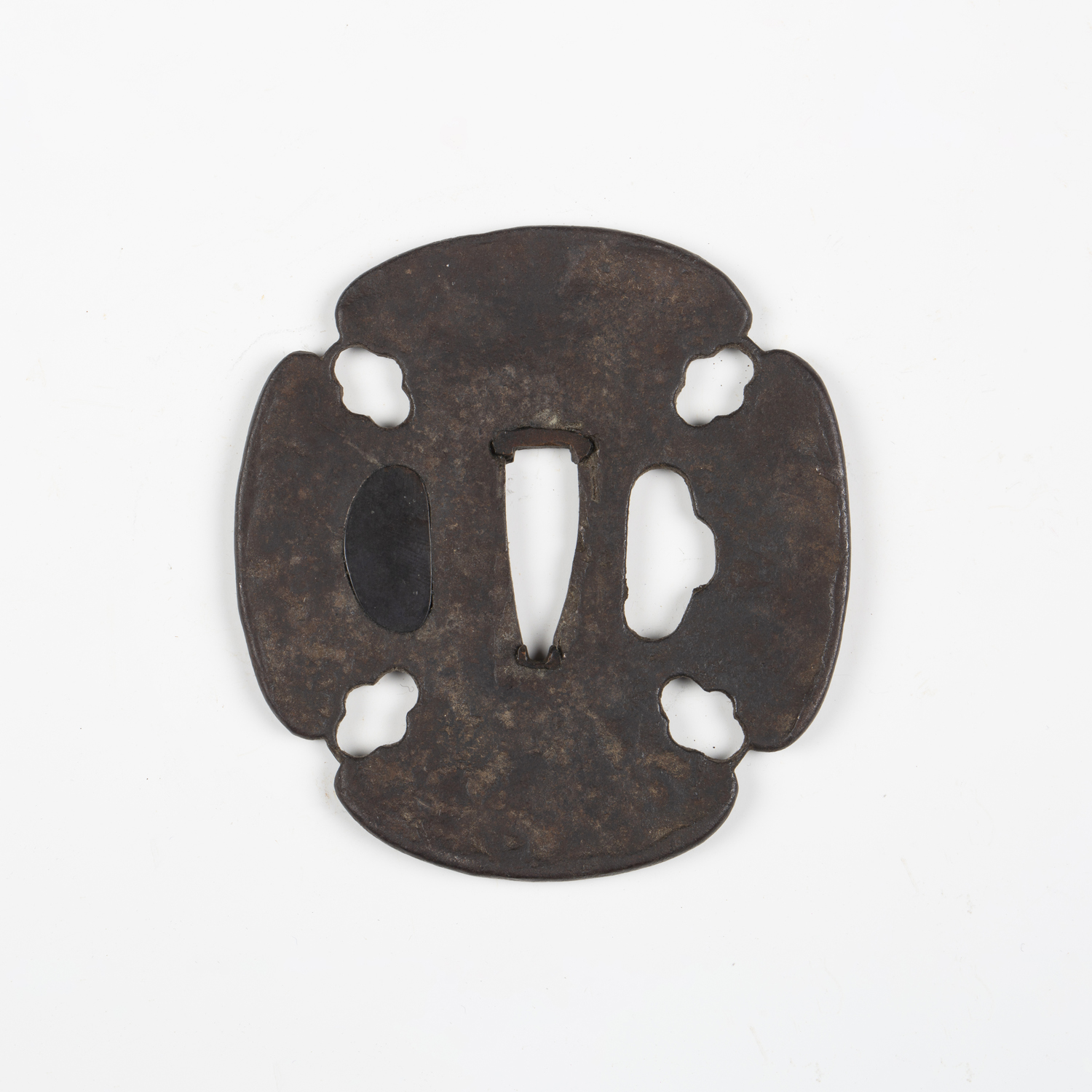 A Japanese shaped oval iron tsuba, probably late 16th century, with part-openwork gourd-like motif decoration, unsigned, 7.4cm x 7.8cm. Provenance: the collection of the late Roald Knutsen (1933-2025). Note: Roald and Patricia Knutsen attributed this to probably a deshi of Nobuie of Myochin-Ryu, late 16th century.