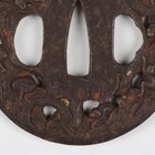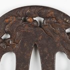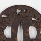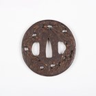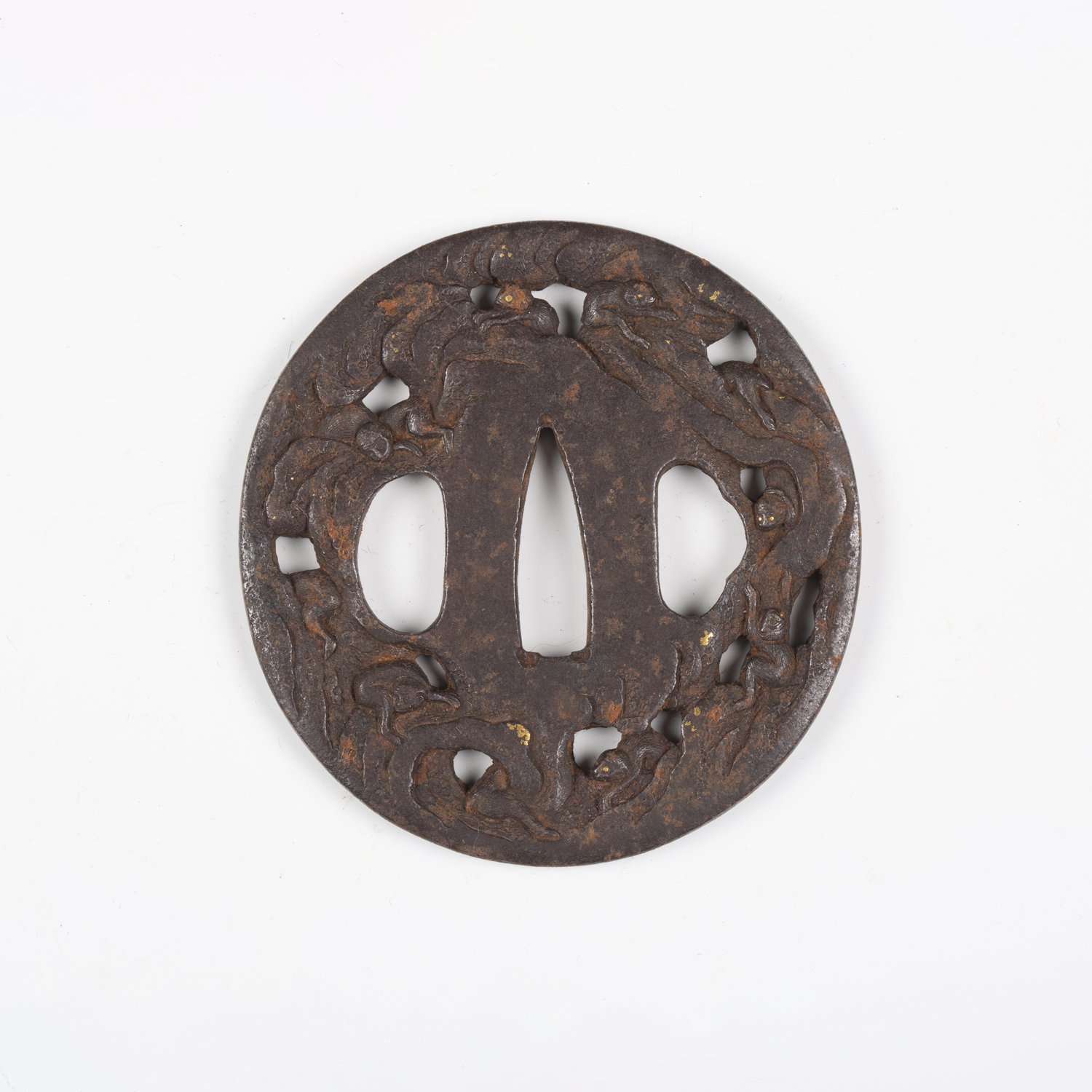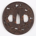 A Japanese circular iron tsuba, Edo period, with fine three-dimensional openwork border, detailed with monkeys climbing playfully through clouds, damascened with gilt metal highlighted features, unsigned, diameter 7cm. Provenance: the collection of the late Roald Knutsen (1933-2025). Note: probably 18th century.