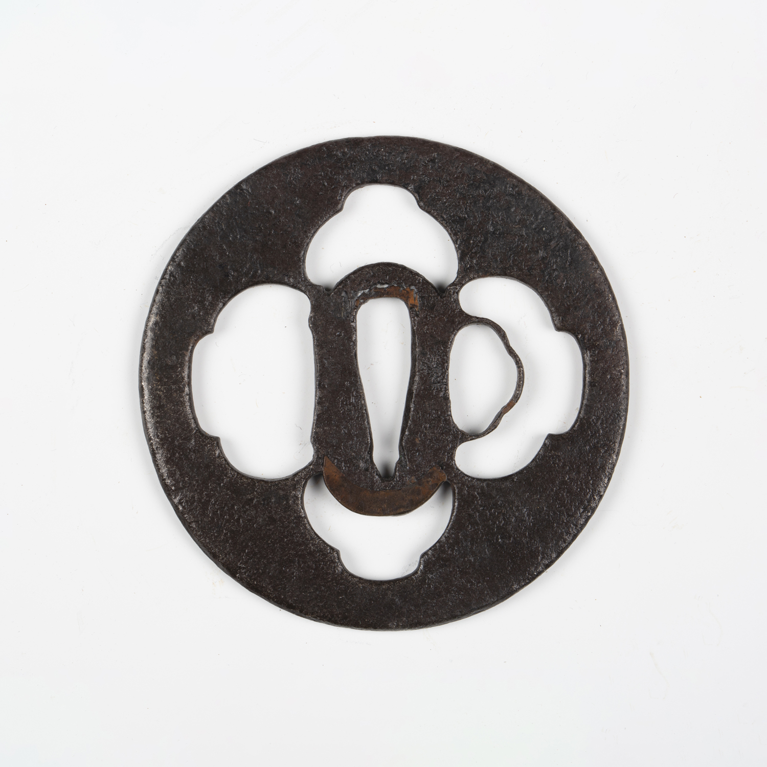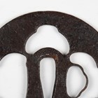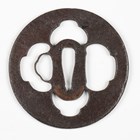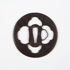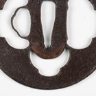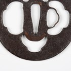 A Japanese circular steel and pierced-decorated iron sukashi tsuba, probably late Muromachi period, the border with openwork motifs, unsigned, diameter 7.6cm. Provenance: the collection of the late Roald Knutsen (1933-2025). Note: Roald and Patrica Knutsen attributed this to Nobuie of Myochin-Ryu, noting that it is typical of his work.