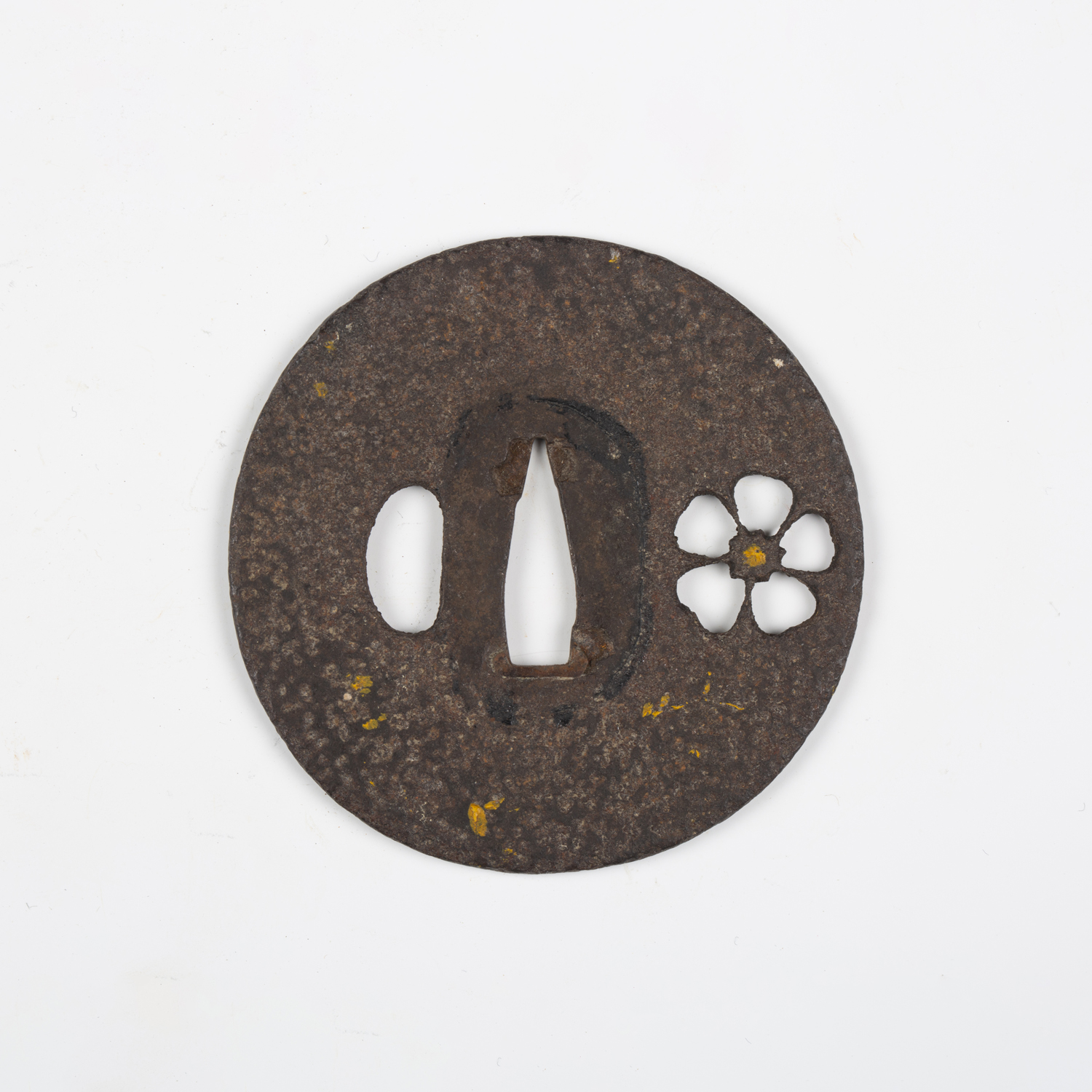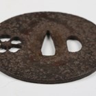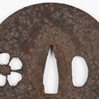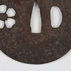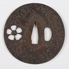 A Japanese iron tsuba, probably mid to late 16th century, of circular form, finely pierced with a cherry blossom flower, unsigned, diameter 7cm. Provenance: the collection of the late Roald Knutsen (1933-2025).