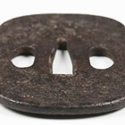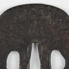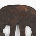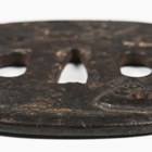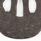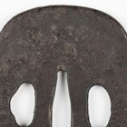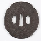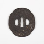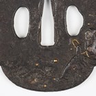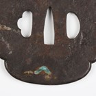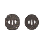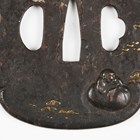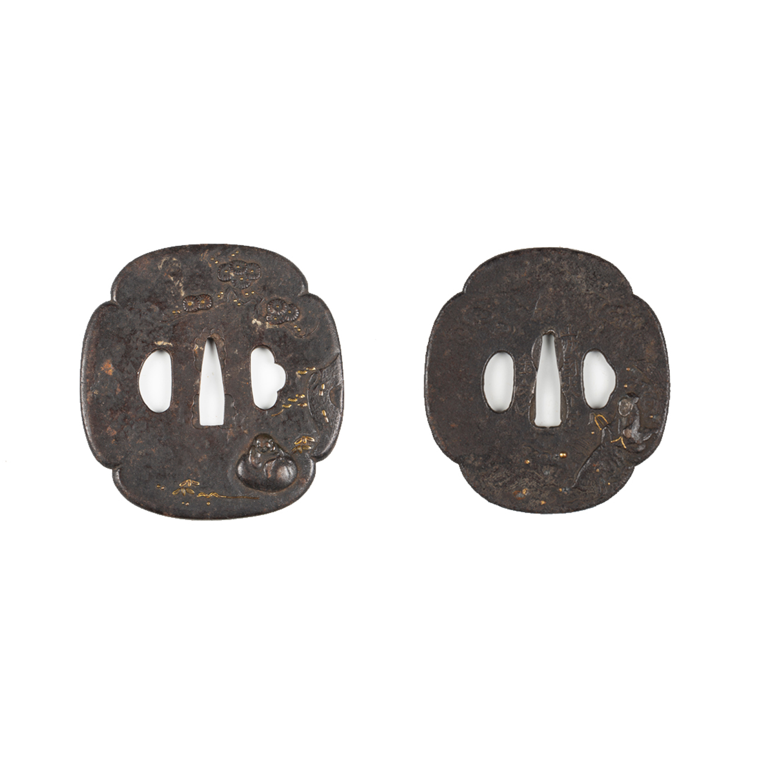 Two Japanese iron tsuba, Edo period, both of shaped oval form, each part-damascened with figures within a landscape, one signed to the centre, 7.5cm x 8.3cm and 8.2 x 8.5cm, within later presentation boxes. Provenance: the collection of the late Roald Knutsen (1933-2025).