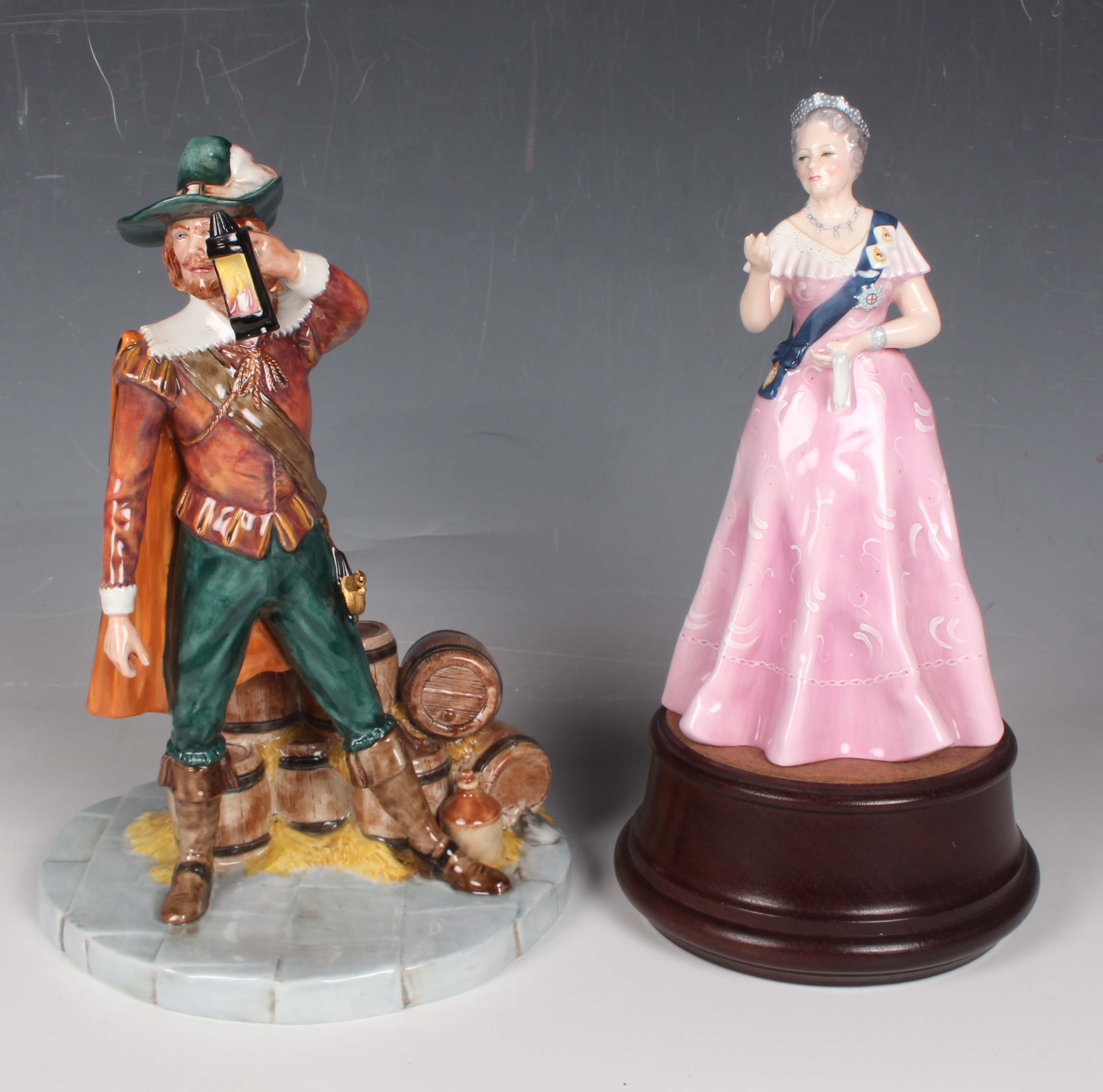 Two Royal Doulton limited edition figures, comprising the Prestige Character Figure Guy Fawkes, HN4784, No. 86 of 350, boxed with certificate, and H.M. Queen Elizabeth The Queen Mother, HN2882, celebrating her 80th birthday, No. 1004 of 1500, boxed with certificate and wood stand.