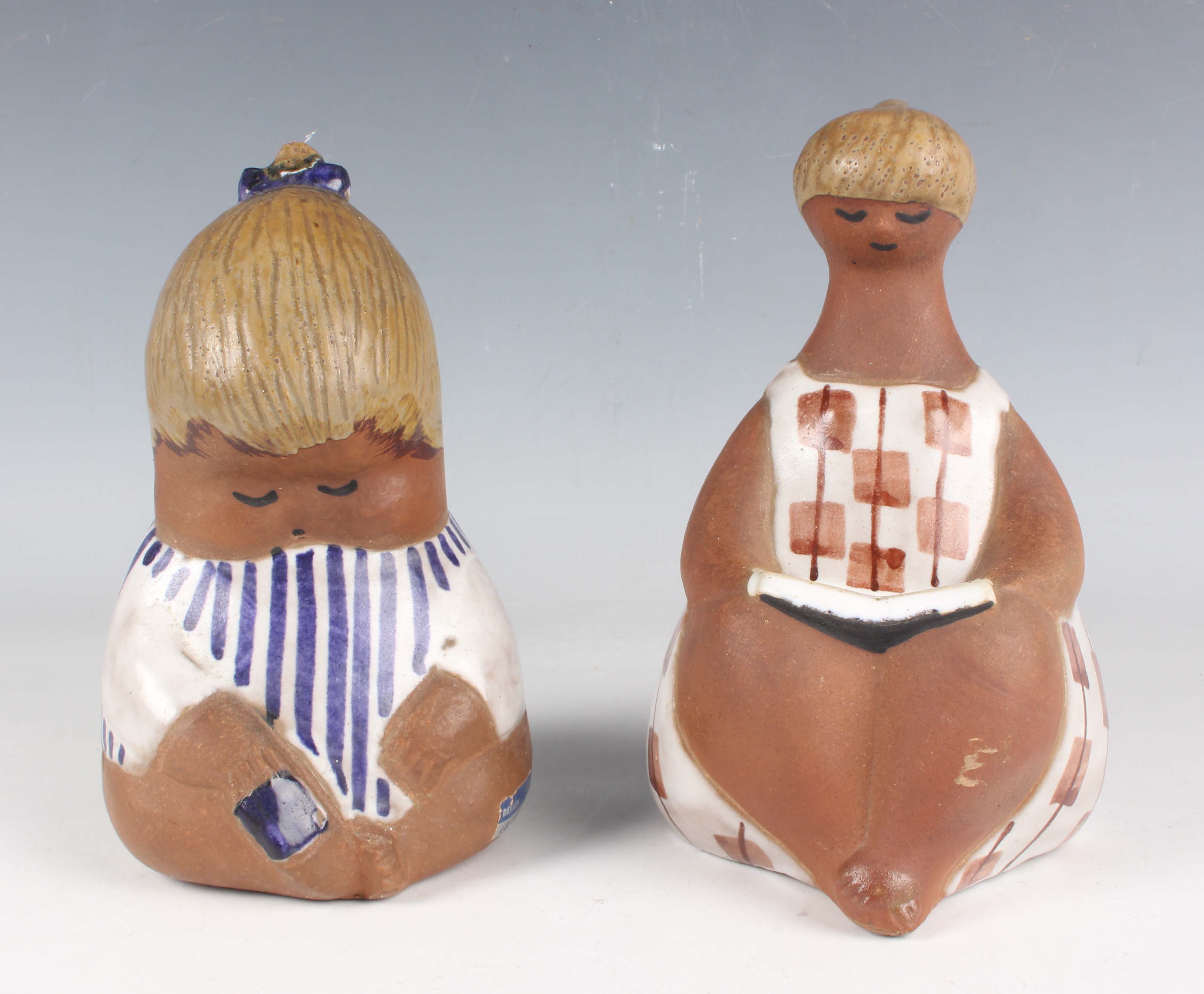 Two Gustavsberg figures designed by Lisa Larson, the first Charlotta from the ABC Girls (ABC Flickor) series, 1958 to 1973, the second Sleepy Johanna from the Larson's Kids (Larsons Ungar) series, circa 1961, printed marks to bases, tallest 16cm (Johanna with small chip to top of hair).