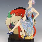 A Kevin Francis limited edition Art Deco style figure Tea With Clarice Cliff, modelled by Andy Moss, No. 171 of 2000, height 22cm, together with a Beswick Ware Art Deco vase painted with a butterfly amidst flowers, height 29cm.
