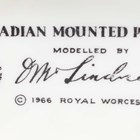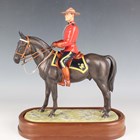 A Royal Worcester figure of a 'Royal Canadian Mounted Policeman', modelled by Doris Lindner, printed marks to base, raised on an oval wooden plinth, total height 29.5cm.