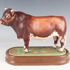 A Royal Worcester model of a 'Dairy Shorthorn Bull', modelled by Doris Lindner, printed marks to base, raised on an oval wooden plinth, total height 20.7cm.