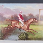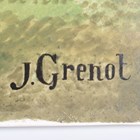 A French rectangular plaque, late 19th century, painted by J. Grenot, signed, with a jockey on horseback going over a water jump, the fence inscribed '3es Course Prix des Glacieres', unmarked to reverse, 56.5cm x 34cm.