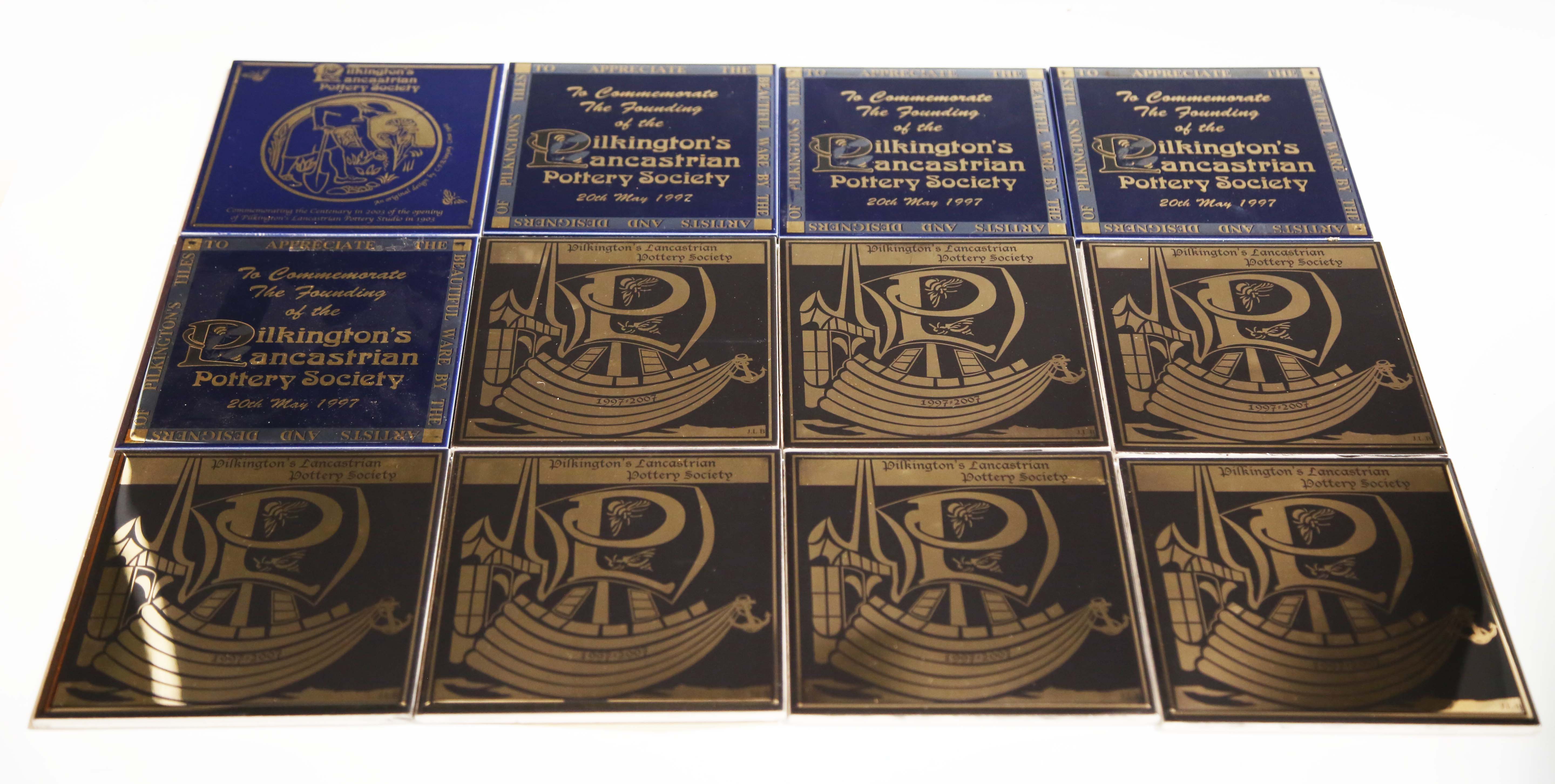 A mixed group of Pilkington’s annual calendar tiles, various dates 1969 to 2010, including a number of repeats, each tile 15.3cm square, together with a group of other Pilkington’s promotional and commemorative tiles, including ten relating to Salford Quays, four different designs relating to the 2002 Manchester Commonwealth Games, three with football club logos for Middlesbrough, Stoke City and Blackburn Rovers, four Royal commemoratives, trade and retail distributor advertising tiles and seventeen in three different designs commemorating the Pilkington’s Lancastrian Pottery Society ten year anniversary in 2007. Provenance: Blanchett Collection.