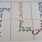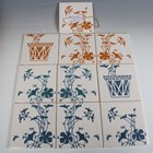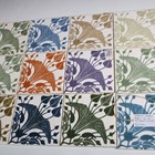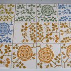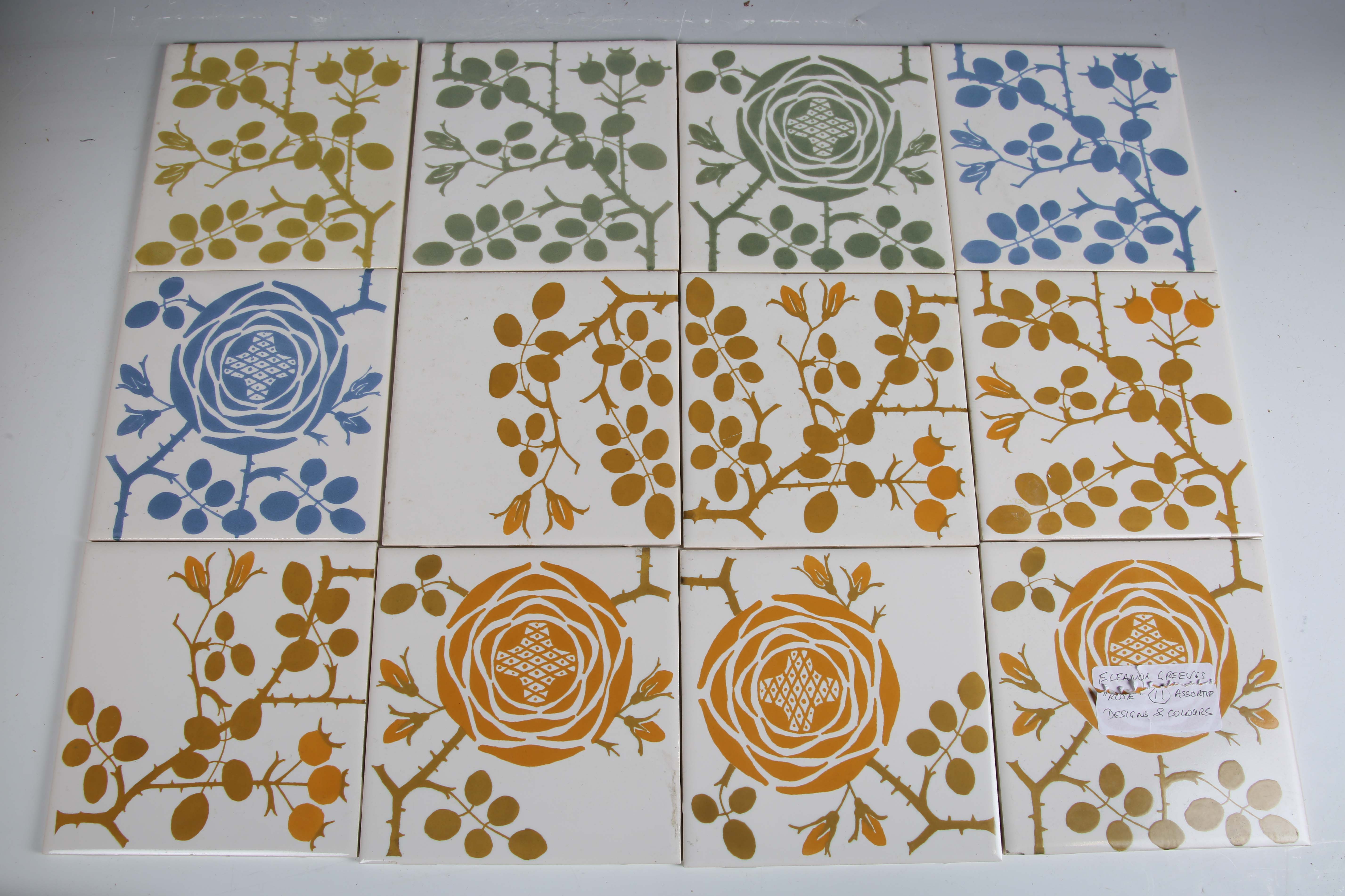 A large quantity of H & R Johnson dust pressed screen-printed tiles, designed by Eleanor Greeves, approximately one hundred, in a variety of mostly floral designs and a number of colourways, including the following patterns, Oak, Buddleia, Rose, Cranesbill, Daisy and Clematis, each approx 15.3cm square. Provenance: Blanchett Collection.