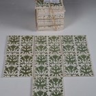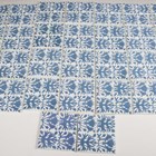 A large quantity of H & R Johnson dust pressed screen-printed tiles, designed by Eleanor Greeves, approximately sixty-five, in a pale blue colourway Buttercup pattern, each tile approx 11cm square, together with thirty-eight matching tiles in a sage green colourway. Provenance: Blanchett Collection.
