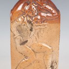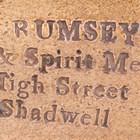 A London stoneware flask, circa 1840, probably Wetherill, the rounded rectangular body of buff glaze with brown dipped rounded shoulders, relief moulded to both sides with a figure representing Jim Crow, impressed to one side 'W RUMSEY Wine & Spirit Merchant High Street Shadwell', height 20.5cm. Note: a similar flask is illustrated by Robin Hildyard 'Browne Muggs, English Brown Stoneware', Victoria and Albert Museum, p. 53. Here it is noted the moulded figure detail is taken from a music cover commemorating the visit of Charles Dartmouth Rice to London in 1836, performing as Jim Crow.