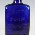 A cobalt blue glass Price's Soap Company Limited bottle, post 1853, of wedge shape with embossed detail above a diamond registration lozenge, height 19cm (probably polished).