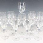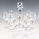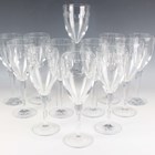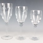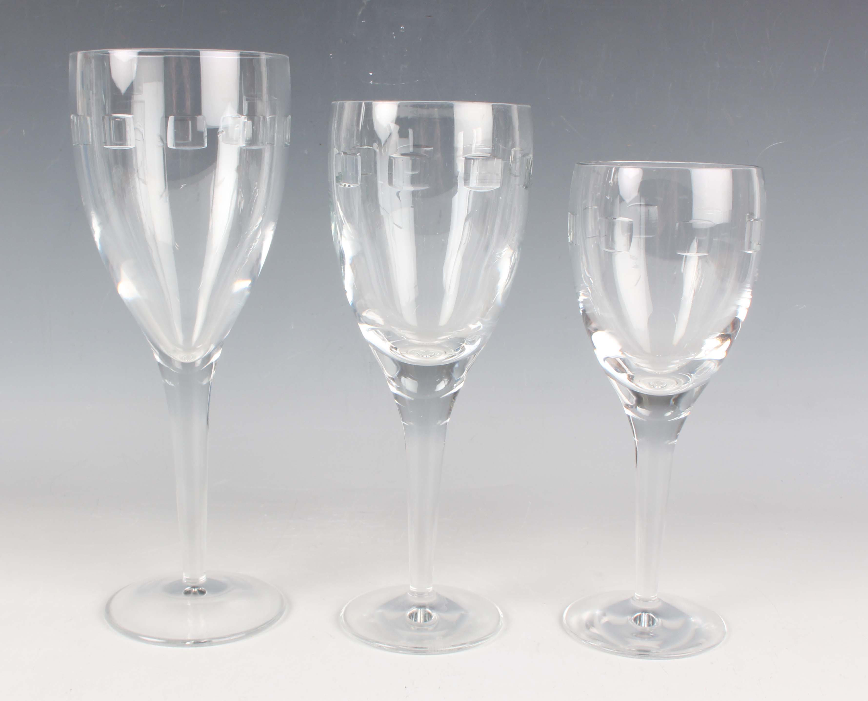 A part suite of Waterford Geo Oden pattern glasses, designed by John Rocha, 1999-2014, comprising twelve water, height 25cm, twelve claret wine, height 23cm, and twelve white wine, height 21cm.