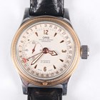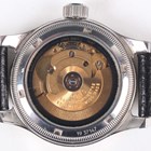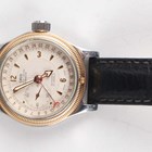 An Oris Automatic stainless steel and gilt metal cased gentleman's calendar wristwatch, Ref. 7487, with signed and jewelled 641 caliber movement, the signed silvered dial with gilt Arabic numeral and arrowhead hour markers, subsidiary seconds and outer date ring, the case with milled gilt surround, the glazed case back numbered '19 37147', case diameter 3.3cm, on a black leather strap.