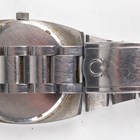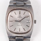 An Omega Automatic stainless steel gentleman's bracelet wristwatch, Ref. 166.0191, circa 1973, the signed and jewelled movement numbered '37742313', the signed silvered dial with baton hour markers and date aperture, the signed case back interior numbered '166.0191' above '366.0835', the tapered link bracelet with signed foldover clasp, case width 3.5cm.