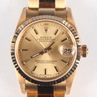 A Rolex Oyster Perpetual Datejust 18K gold lady's bracelet wristwatch, Ref. 78278, circa 1999, with signed and jewelled movement, the signed gilt dial with Rolex crown at 12 o'clock, baton hour markers and date aperture, the case with fluted bezel, Rolex crown to winding button, numbered '78278' and 'A812076' between the lugs, the tapered link bracelet with signed foldover clasp, detailed '18K 750' and numbered '7205 A', case diameter 3cm, total weight 92.3g.