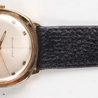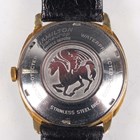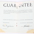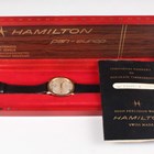 A Hamilton Automatic Pan-Europ gilt metal fronted and steel backed gentleman's wristwatch, Ref. 63009-4, the signed silvered dial with gilt hour markers, with signed case back, case width 3.3cm, on a black leather strap, with original Hamilton case and instruction booklet, dated '26.2.68'.